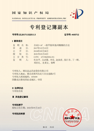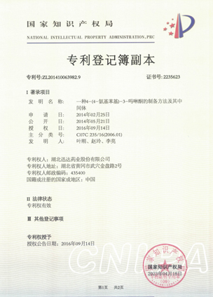 公司擁有一支高素質(zhì)科研隊伍,具備專業(yè)而高效的研發(fā)能力。近幾年,共取得科技成果30項,其中9項獲國家發(fā)明專利,2項獲湖北省科技進步獎,開發(fā)新產(chǎn)品8個,綠色合成、手性合成和催化等技術引領行業(yè)發(fā)展。主要銷往歐美、日本、韓國、中東、印度等40多個國家和地區(qū)。